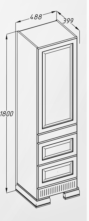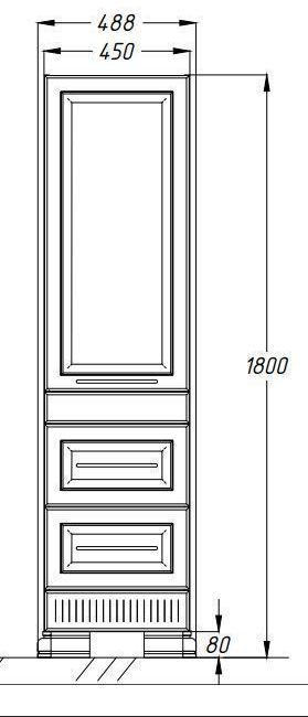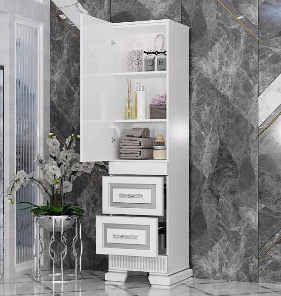 Пенал Opadiris Оникс 50 белый глянцевый с серебряной патиной, левый